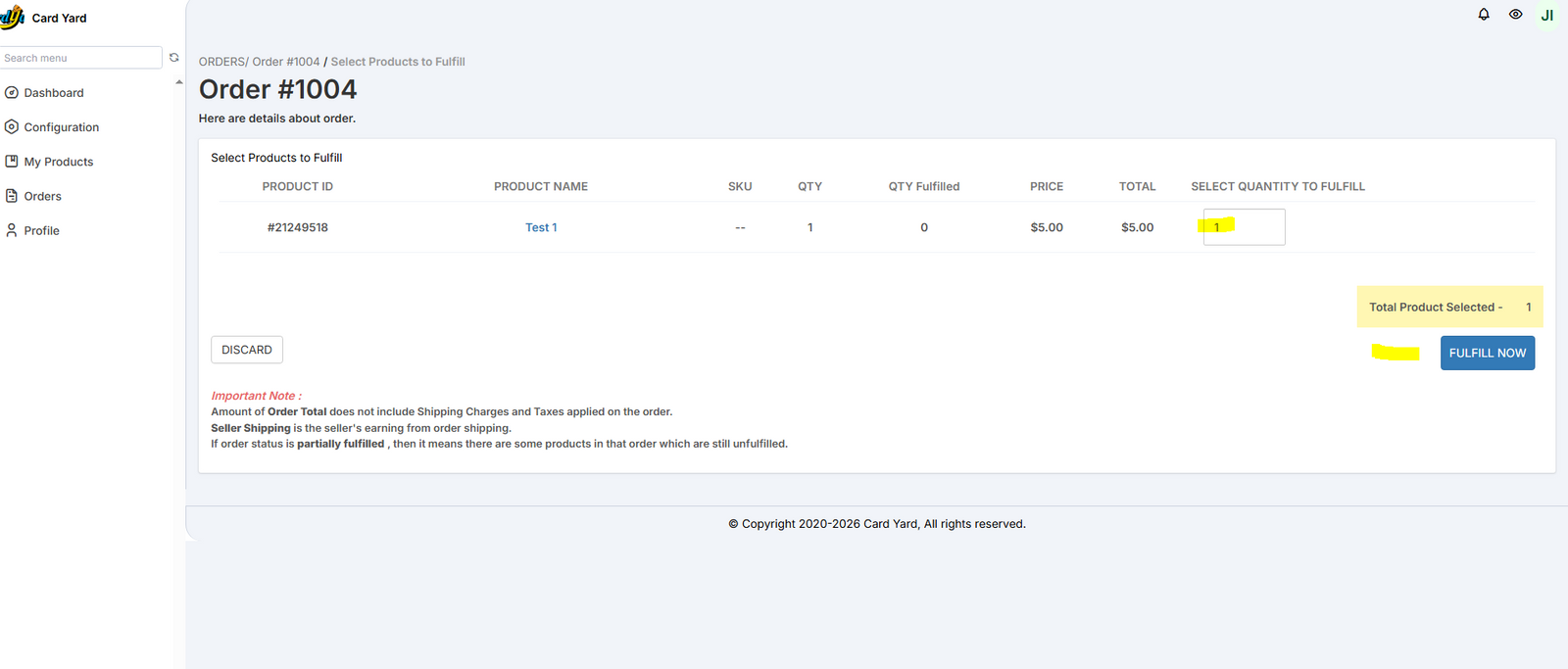 Confirm Fulfilment and Quantity, the press Fulfill Now.