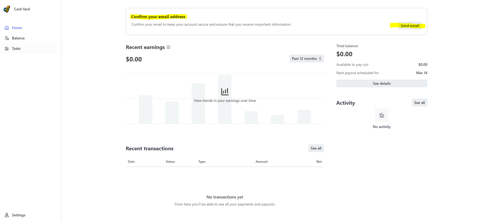 Shows sellers the beggining steps of becoming a seller on Card Yard.