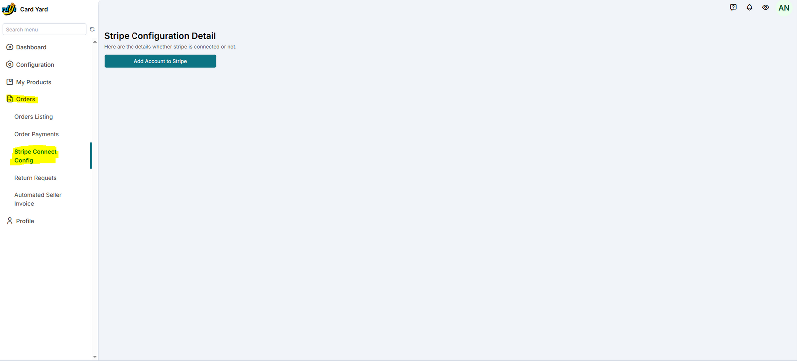 This is where Stripe can be found. Orders, then Stripe Connect Config. Additional onboarding information for stripe will be below.